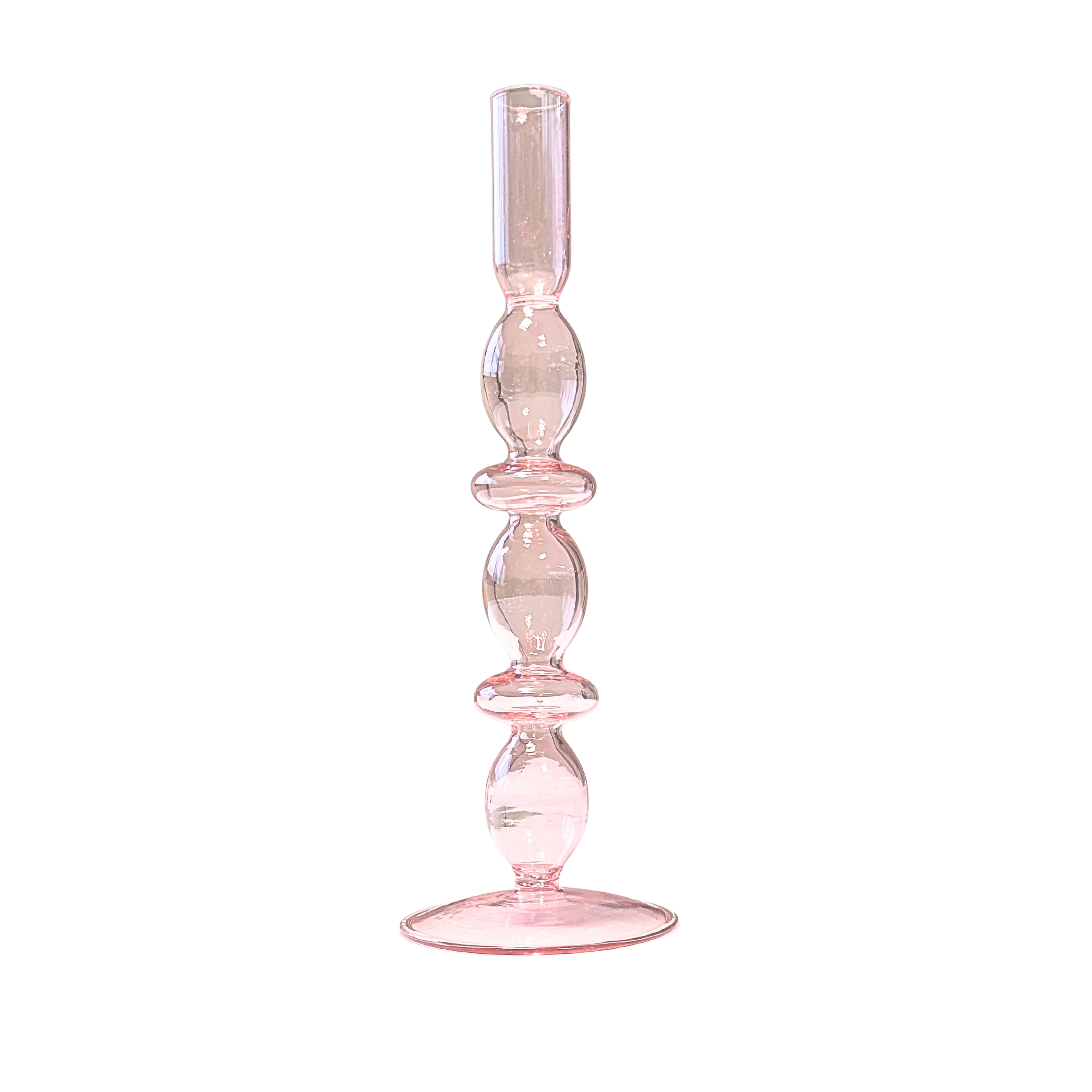 Bougeoir Verre Bulle ROSE CLAIR H25.7cm