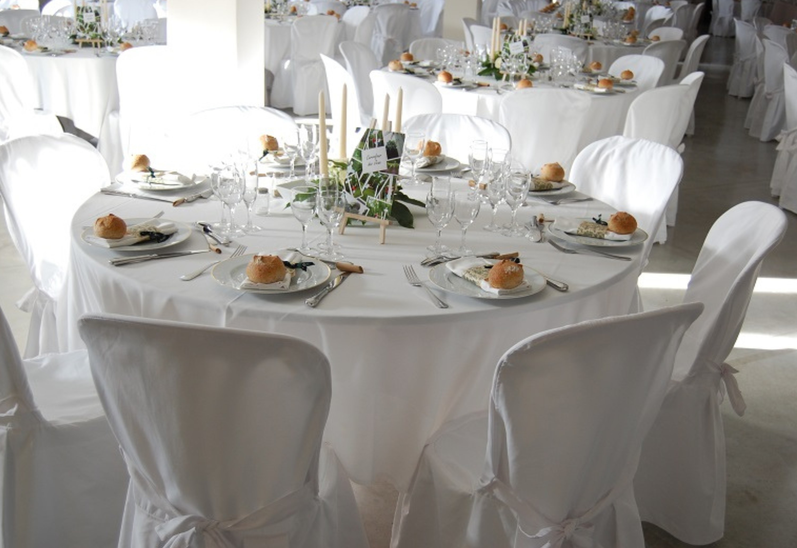 Apportez une touche de raffinement à vos événements avec notre housse ivoire avec nœud, conçue spécifiquement pour s'adapter à notre chaise empilable en résine blanche.