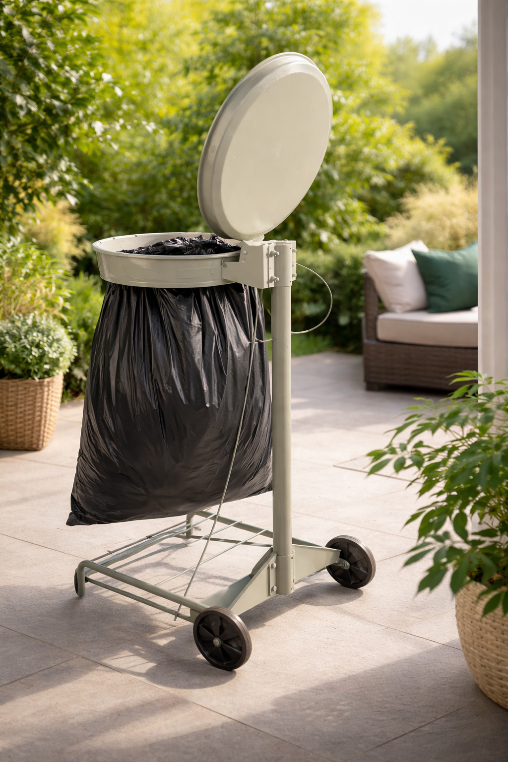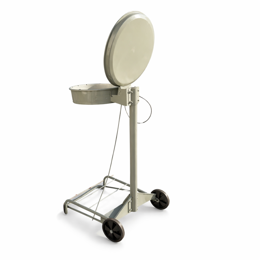 Pratique et fonctionnel, ce support permet une ouverture sans contact grâce à sa pédale intégrée, garantissant une utilisation hygiénique tout au long de votre événement.