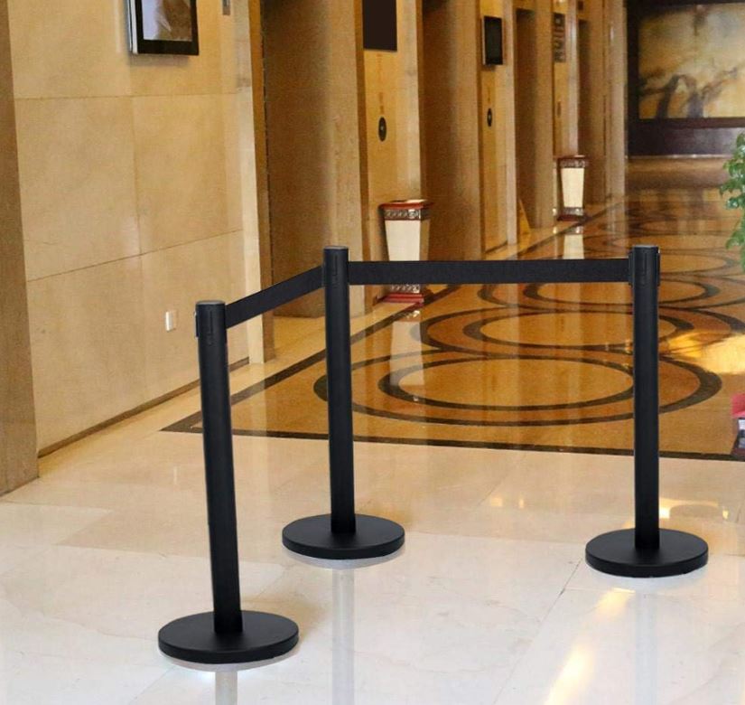 Sa sangle 2 m (option sangle fixe ou rétractable selon stock) permet de créer des files d’attente propres et visibles sans encombrer l’espace.