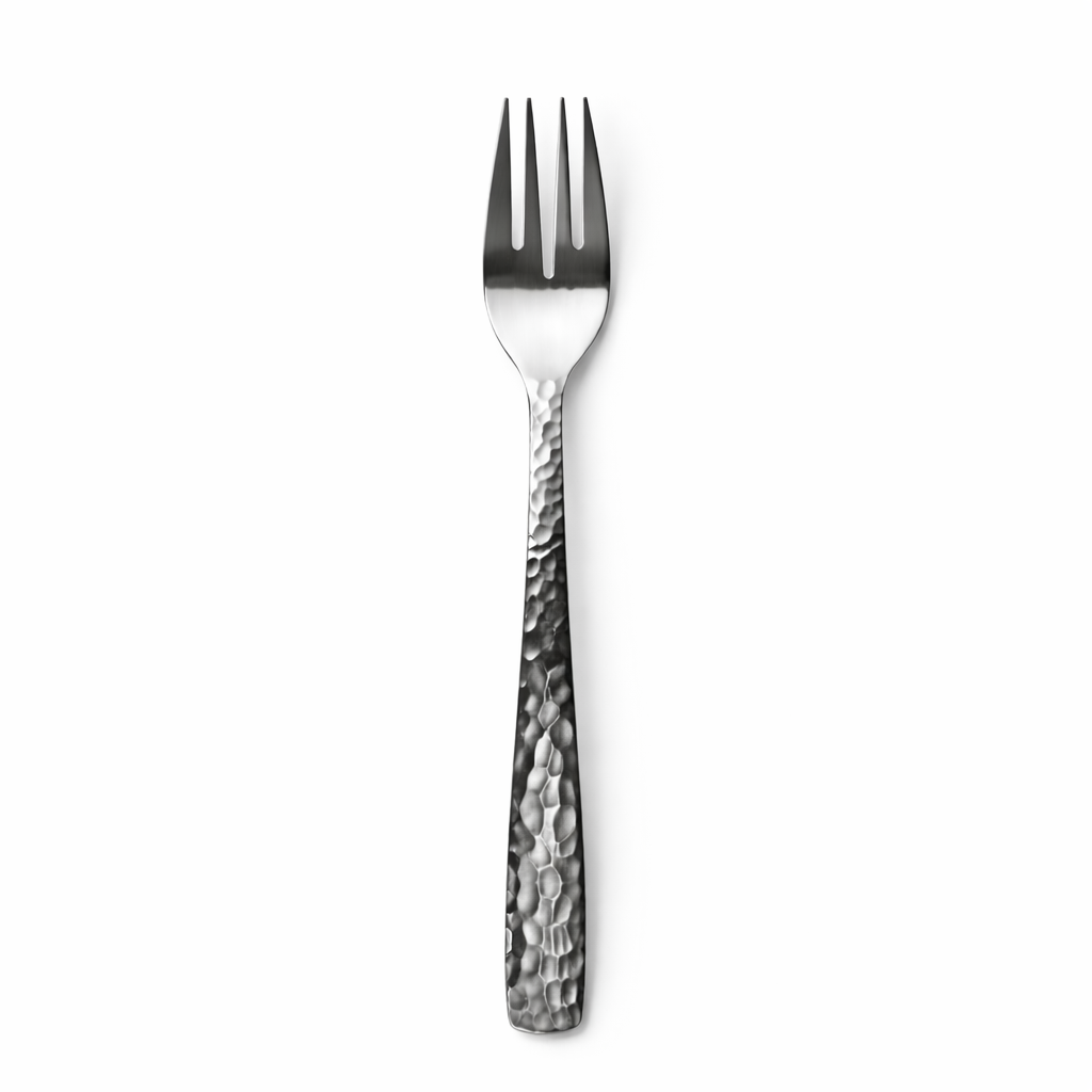 Apportez du caractère à vos dressages avec cette gamme de couverts en inox finition martelée, à la fois moderne et élégante. Leur manche texturé capte la lumière et donne une dimension unique à vos tables.