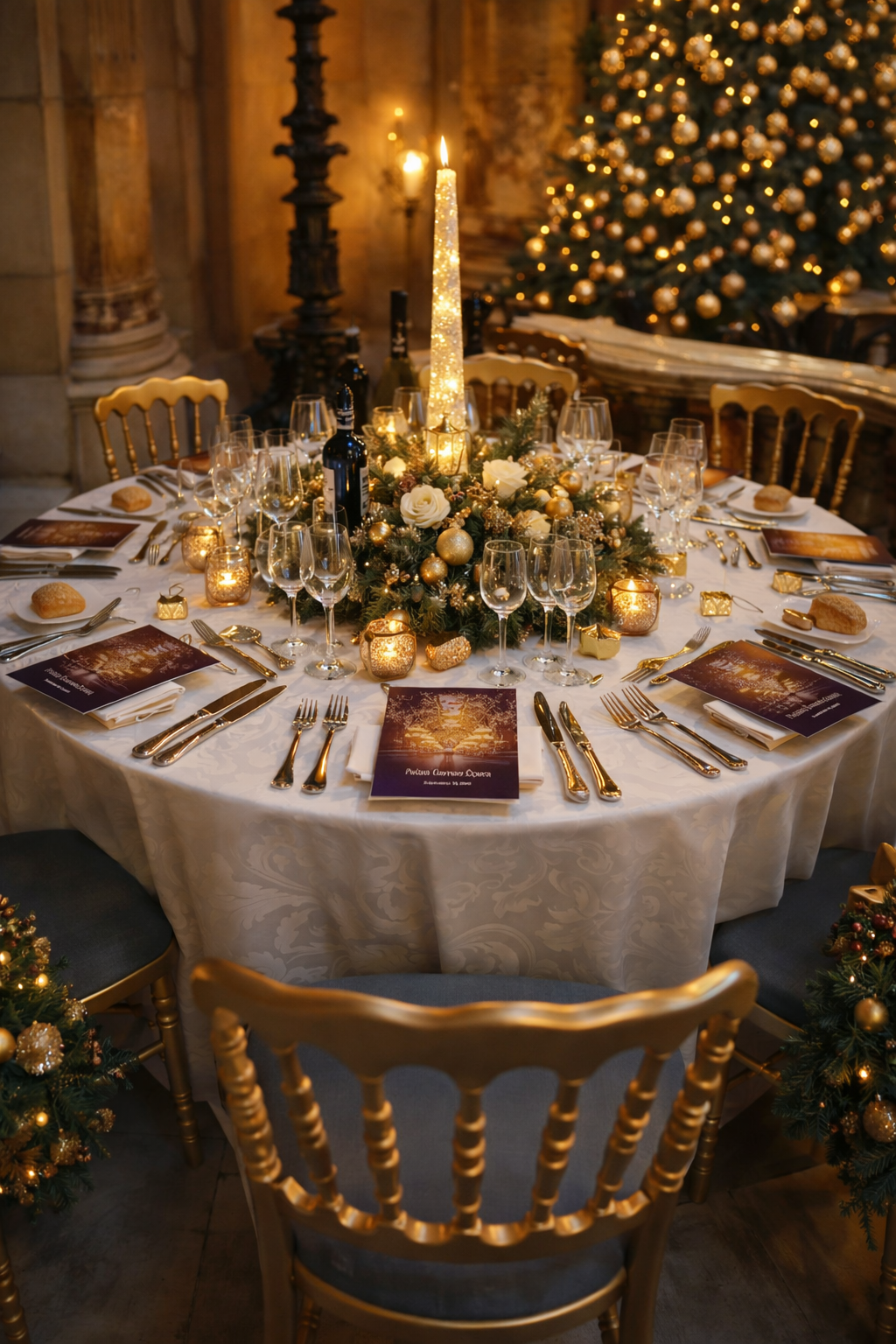 Parfaite avec des tables rondes nappées, de la vaisselle dorée ou des centres de table floraux pour un effet majestueux.