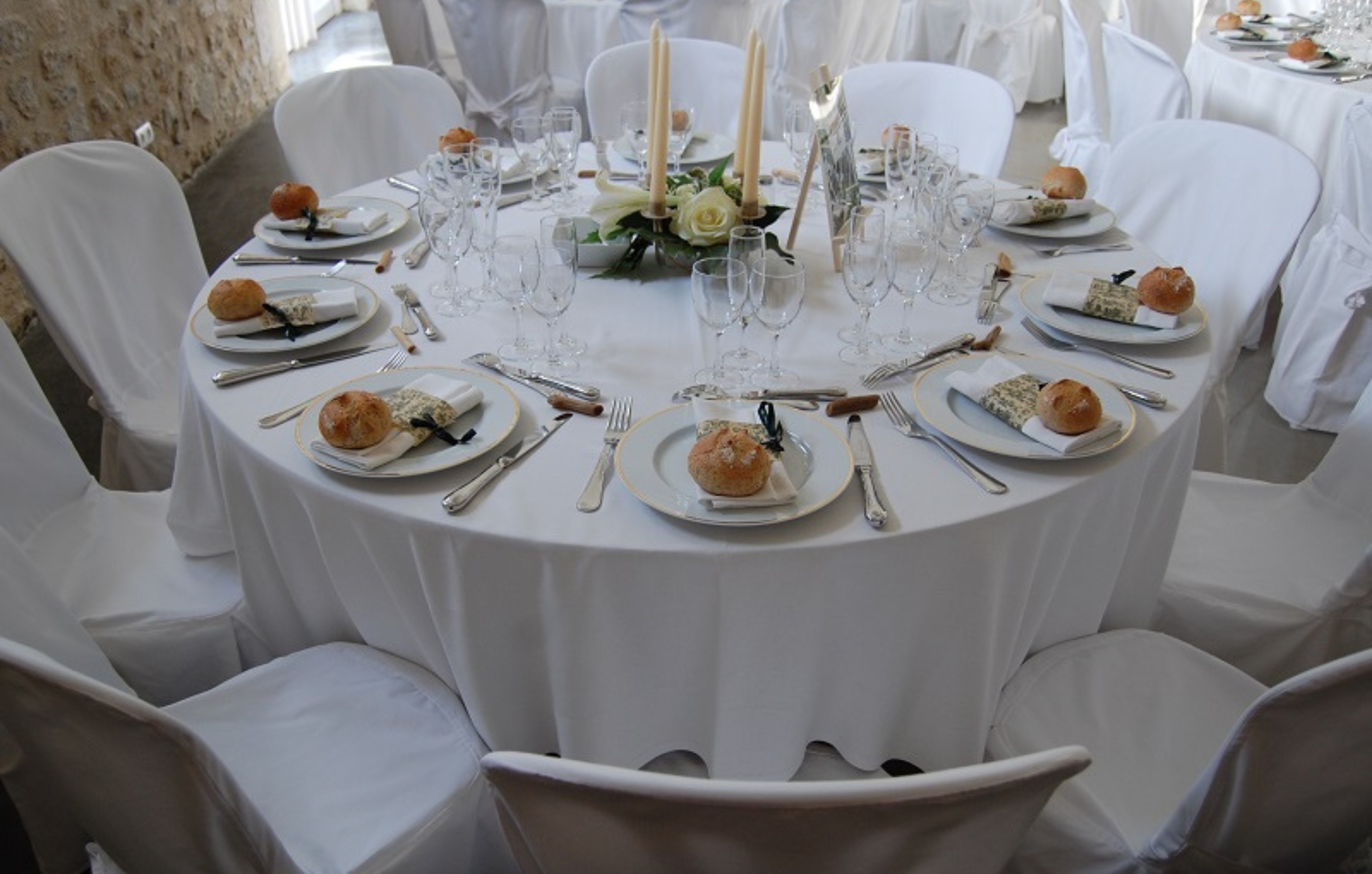 Apportez une touche de raffinement à vos événements avec notre housse ivoire avec nœud, conçue spécifiquement pour s'adapter à notre chaise empilable en résine blanche.