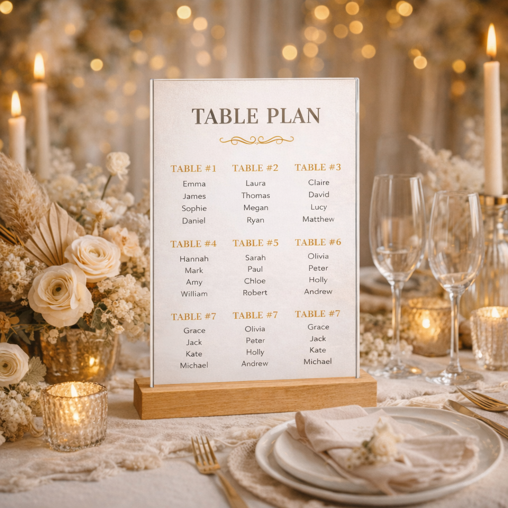 Idéal pour présenter menus, plans de table ou informations.