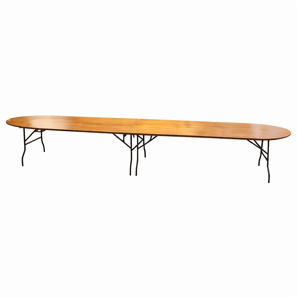 Spacieuse et élégante, cette table ovale en bois est parfaite pour vos repas de mariage, réceptions haut de gamme, repas familiaux ou événements d'entreprise.